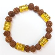 Five face rudraksha 10mm size strung with "Om mani Pedme Om " Written agate stone in streachable thread.Blessed with Rimpoche In Nepal. Good for Protection and vitality.