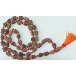Mala of tulsi beads made in red thread with knots in between the beads with total number of beads 108+1 . Wearer of this mala gets blessing from the Lord Vishnu. He/She will have a joyous and happy life.